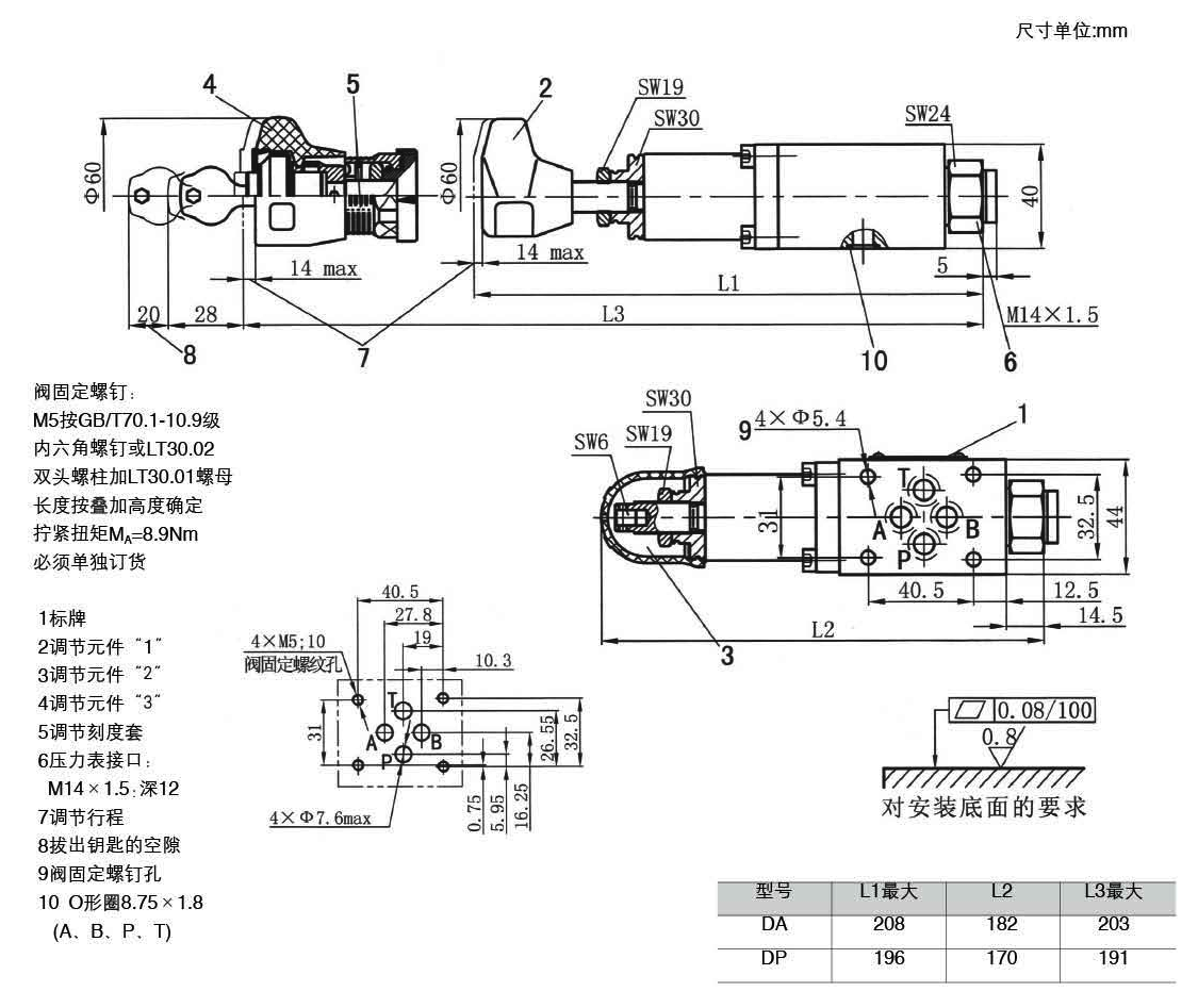-3種調(diào)節(jié)形式 :旋鈕 帶保護套的調(diào)節(jié)螺栓 帶鎖旋扭